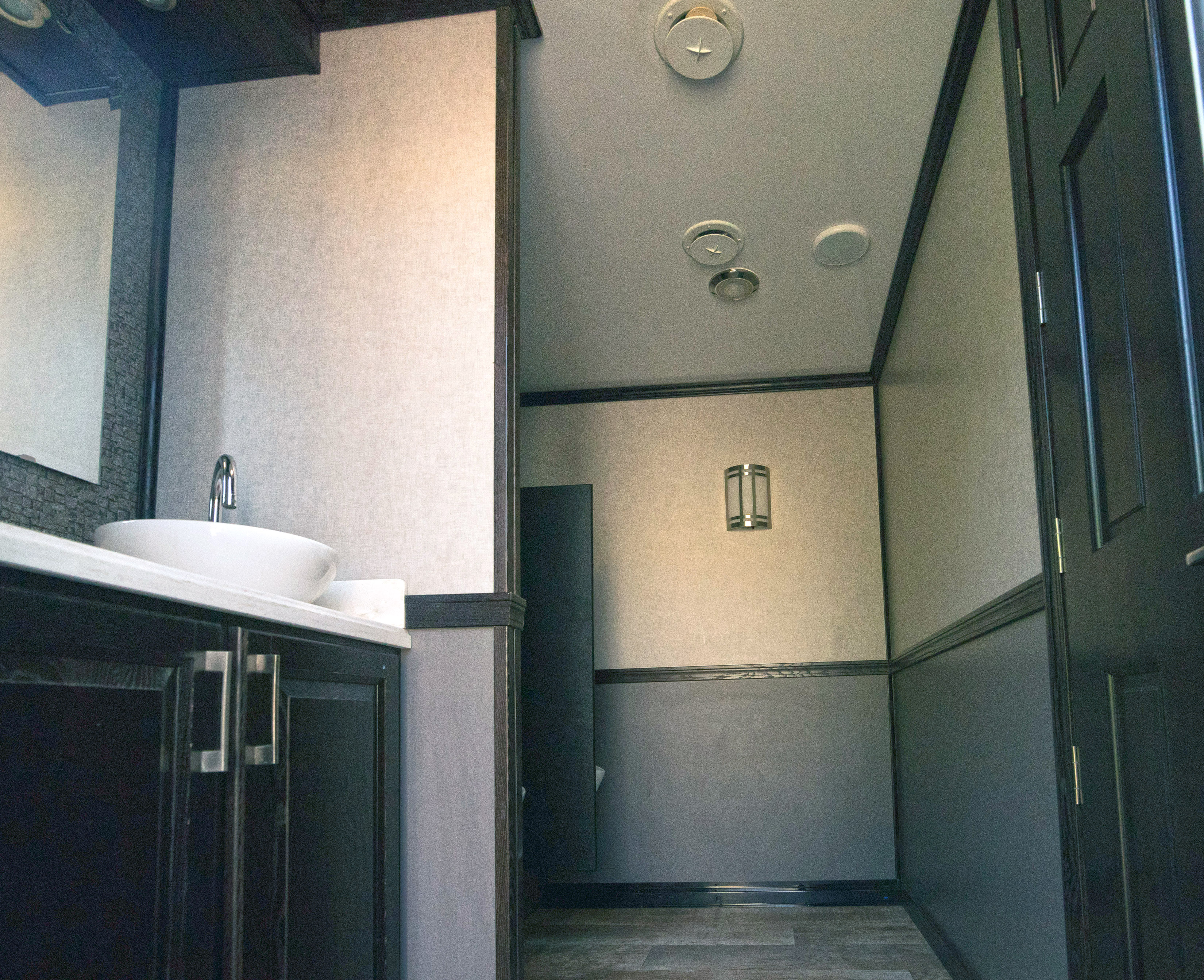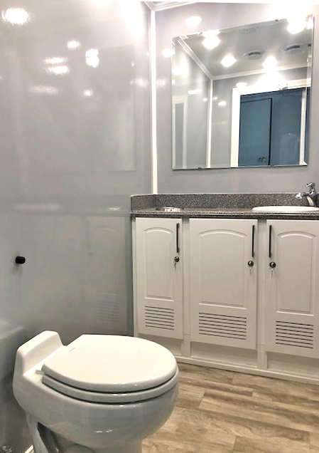 Texas Luxury Restrooms rents mobile trailers for special events, plumbing emergencies, restroom remodeling jobs, and more. These units are a big step up from porta-potties and come with running water, sinks, climate control, music, and the luxuries of a home restroom. Our fancy water-flushing mobile restroom trailers have separate men’s and women’s restrooms and all come with flushing toilets, air conditioning/heating, sinks, and lighting on the interior and exterior. All of our restroom trailers will make your guests feel as if you have walked into your home bathroom. The price range for our luxury restroom trailers is from $1600 – $3800 for a one-day or weekend rental.